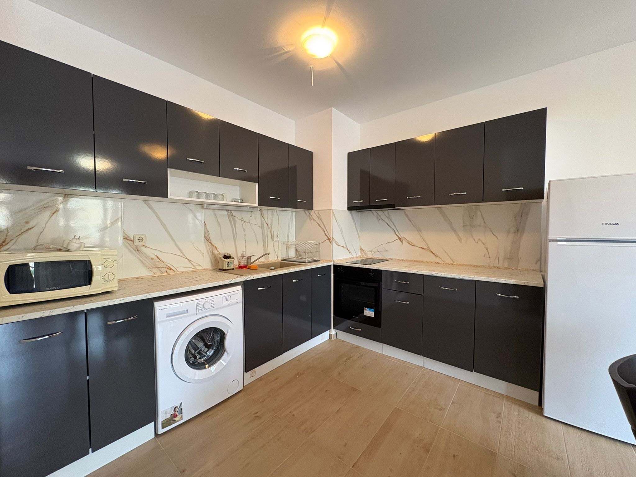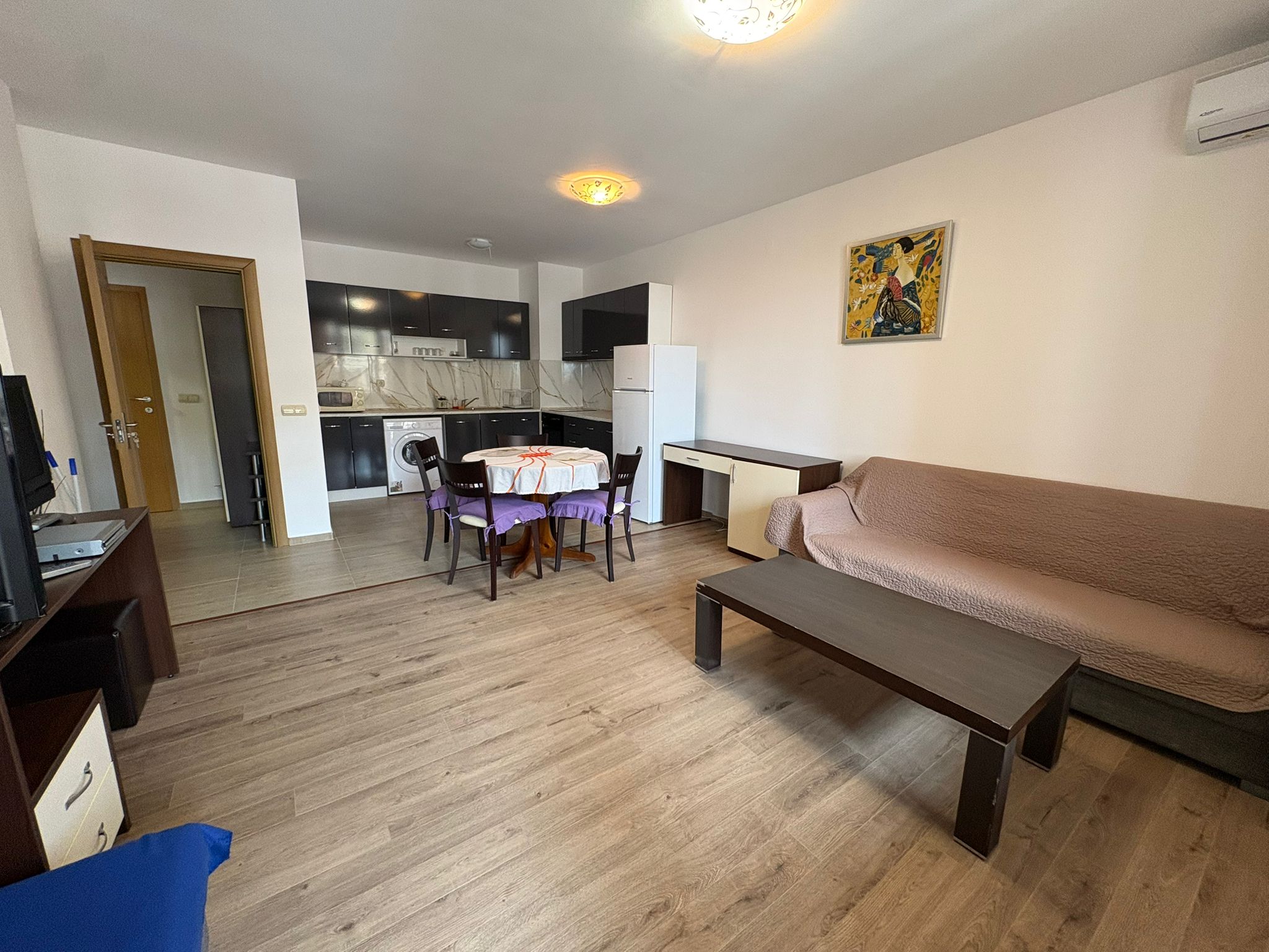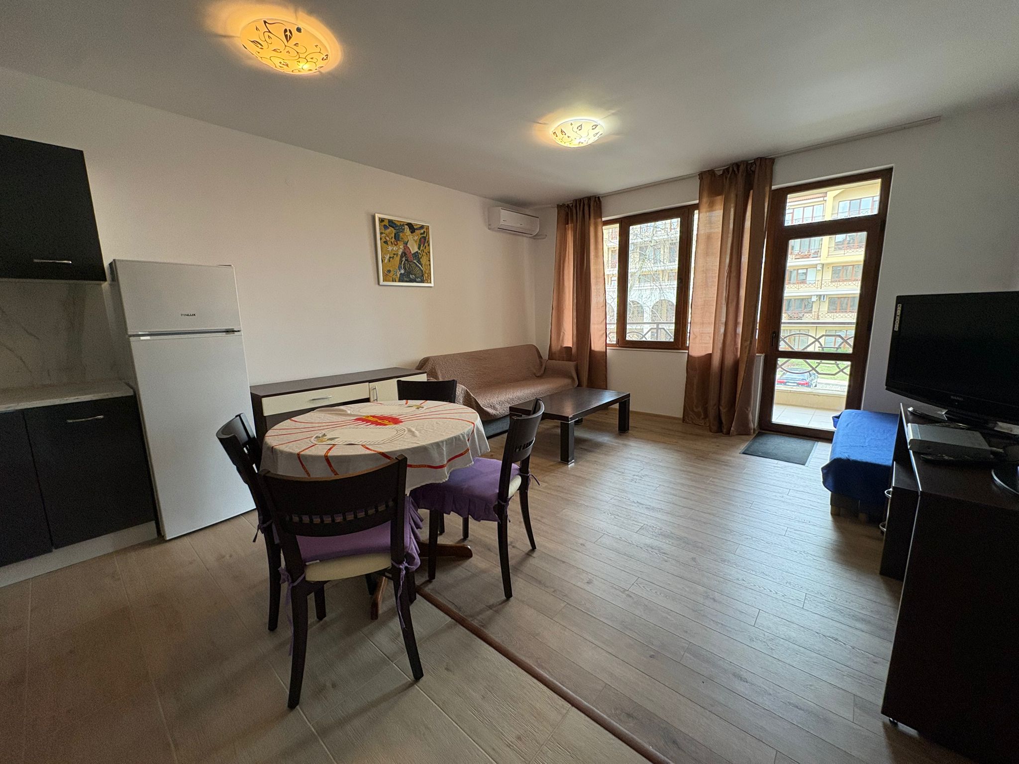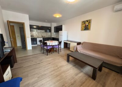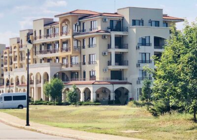 Zum Verkauf steht eine komplett ausgestattete 2-Zimmer-Wohnung im exklusiven Lighthouse Golf & Spa Resort – einem der renommiertesten Golf- und Ferienresorts an der bulgarischen Schwarzmeerküste. Details zur Immobilie: • Wohnfläche: 75,44 m² • Gesamtfläche inkl. Gemeinschaftsanteile: 81 m² • Großzügige, überdachte Terrasse – ideal für entspannte Stunden im Freien • Vollständig möbliert und sofort bezugsbereit Die Wohnung überzeugt durch eine durchdachte Raumaufteilung mit hellem Wohnbereich, integrierter Küche und direktem Zugang zur großen Terrasse. Das Schlafzimmer bietet ausreichend Platz und Komfort. Das Badezimmer ist modern ausgestattet. Die überdachte Terrasse erweitert den Wohnraum nach außen und schafft eine angenehme Atmosphäre – perfekt für Frühstück im Freien oder entspannte Abende. Das Resort bietet unter anderem: • 18-Loch-Golfplatz, entworfen von Ian Woosnam • Hochwertiges Spa- und Wellnesscenter • Mehrere Außen- und Innenpools • Restaurants, Bars und stilvolles Clubhaus • Gepflegte Parkanlagen und weitläufige Grünflächen • 24/7 Sicherheitsdienst und professionelle Verwaltung • Privater Strandzugang (saisonal) Diese Immobilie eignet sich sowohl als komfortabler Wohnsitz am Meer als auch als attraktive Investition mit Vermietungspotenzial.